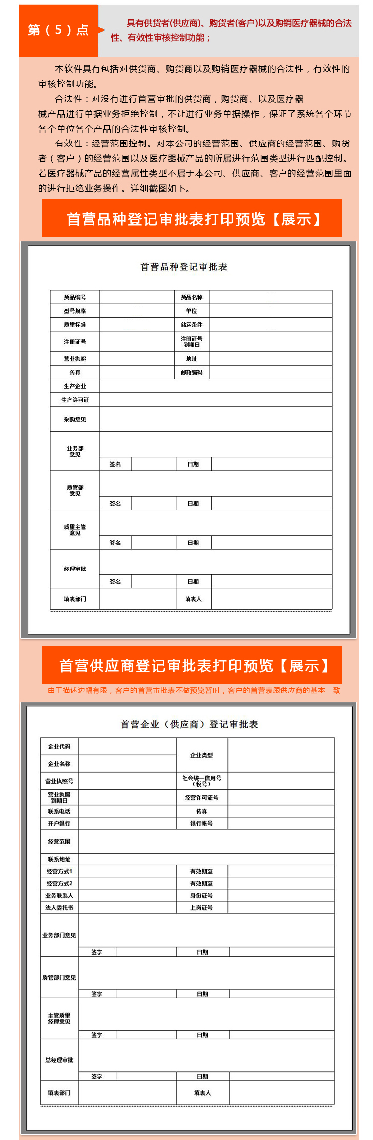 【我们的医疗器械软件 符合药监部门最新验收标准】:系统严格按照国家药监部门医疗器械质量管理规范的要求开发,系统不仅提供首营管理、入库验收、出库复核、库存养护、效期药品催销等的整套质量管理规范流程控制,相关质量管理记录自动生成,在广东省、江西省、辽宁省、福建省、浙江省、云南省、江苏省、海南省、河南省、河北省、湖北省、湖南省、山西省、山东省、安徽省、黑龙江省、四川省、贵州省、陕西省、甘肃省、青海省、广西、新疆、内蒙古、西藏、宁夏、北京市、上海市、广州市、深圳市、重庆市、天津市等全国23个省、五个自治区和四个直辖市使用完美双赢医疗器械软件的医疗器械企业都通过药监验收。