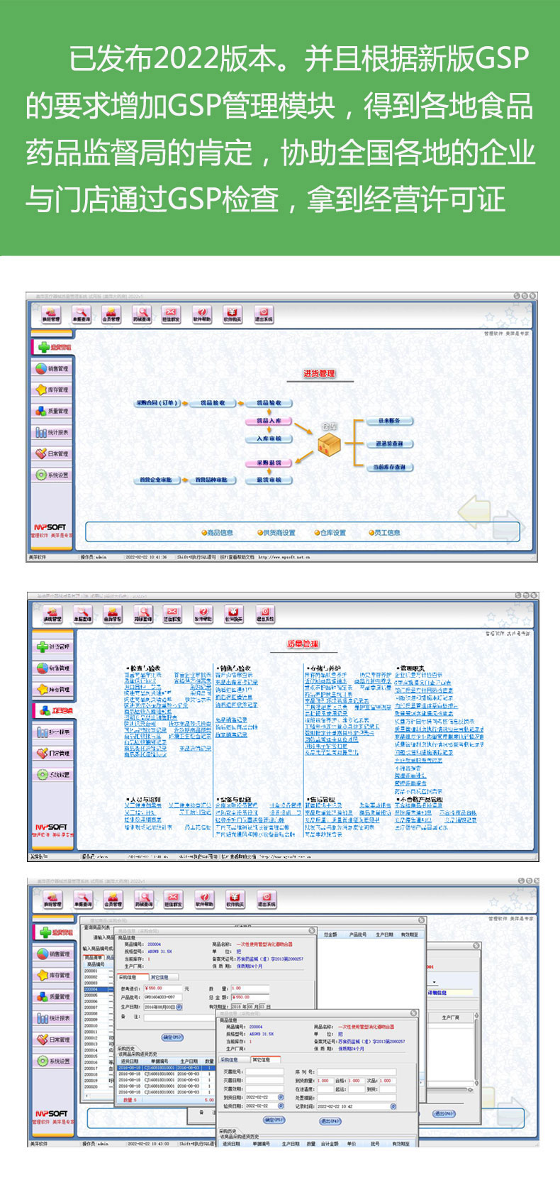 美萍医疗器械gsp质量管理软件(美萍医药质量管理系统)根据国家最新版GSP的政策规定增加了GSP管理模块