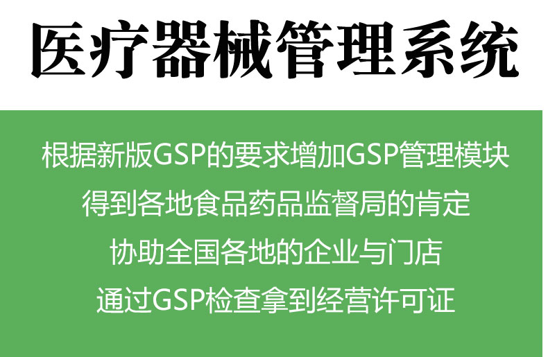 美萍医疗器械gsp质量管理软件(美萍医药质量管理系统)根据国家最新版GSP的政策规定增加了GSP管理模块,得到各地食品药品监督局的肯定,协助全国各地的企 业与门店通过GSP检查,拿到经营许可证 .